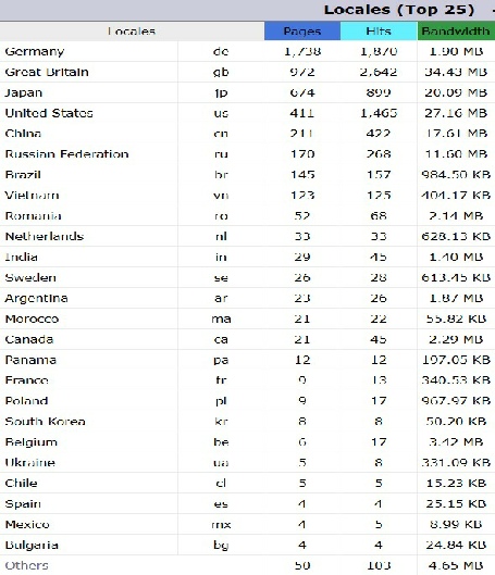 Reported last month was the collapse of interest from Germany now dramatically recovered to 1738 pages read albeit they’re not on long with a bandwidth of 1.9MB!How interest changes - interest from Germany has collapsed reverting in Sept 2025 to its past pages read around 56. Although interest from USA has overall fallen the useadeof the website remains substantial with a bandwidth of 27.16MB.